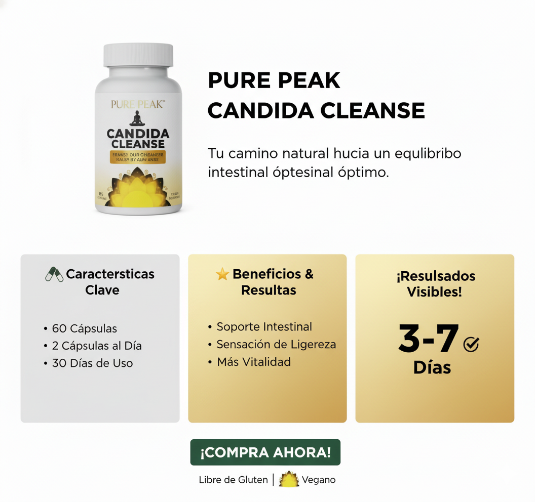 Es un suplemento natural diseñado para equilibrar la flora intestinal y reducir el exceso de cándida en tu cuerpo, promoviendo digestión saludable y bienestar general.